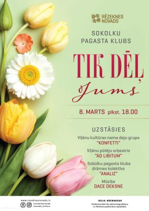 Aicinām izmantot izdevību sajust svētku gaisotni un visiem kopā sagaidīt starptautisko sieviešu dienu. Koncertā piedalīsies Viļānu kultūras nama deju grupa “Konfetti” un Viļānu pūtēju orķestris “Ad Libitum”. Pasākuma laikā sagaidāms arī pārsteigums no Sokolku amatierteātra “Analiz”. Koncertprogrammu sniegs mūziķe Dace Deksne, kas izpilda dažāda žanra gan pašmāju, gan ārzemju hitus.