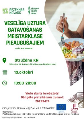 Aicinām piedalīties veselīga uztura gatavošanas meistarklasē pieaugušajiem, Strūžānu pagasta kultūras namā 13. oktobrī no plkst. 18.00–20.00 .