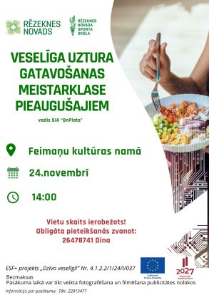Aicinām piedalīties veselīga uztura gatavošanas meistarklasē pieaugušajiem, ESF+ projekta “Dzīvo veselīgi” ietvaros!