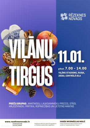 Kā ierasts katru mēnesi, arī 11. janvārī tiekamies Viļānos! Tirgus apmeklētājiem būs iespēja iegādāties dažādus rudens labumus, mājsaimniecībā noderīgus produktus, vietējo mājražotāju un amatnieku darinājumus.