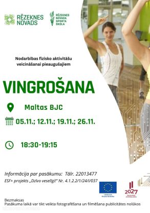 Aicinām piedalīties vingrošanas nodarbībā ESF+ projekta “Dzīvo veselīgi” ietvaros!