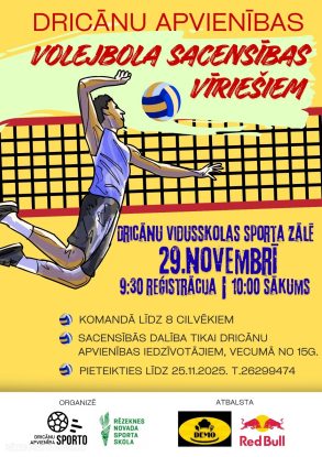 Aicinām Dricānu apvienības iedzīvotājus piedalīties volejbola sacensībās vīriešiem!
