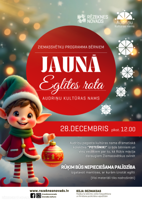 Aicinām uz Audriņu pagasta kultūras nama dramatiskā kolektīva “Potešniki” izrāde bērniem un viņu vecākiem par to, kā Rūķis mācīja draugiem Ziemassvētkus svinēt.