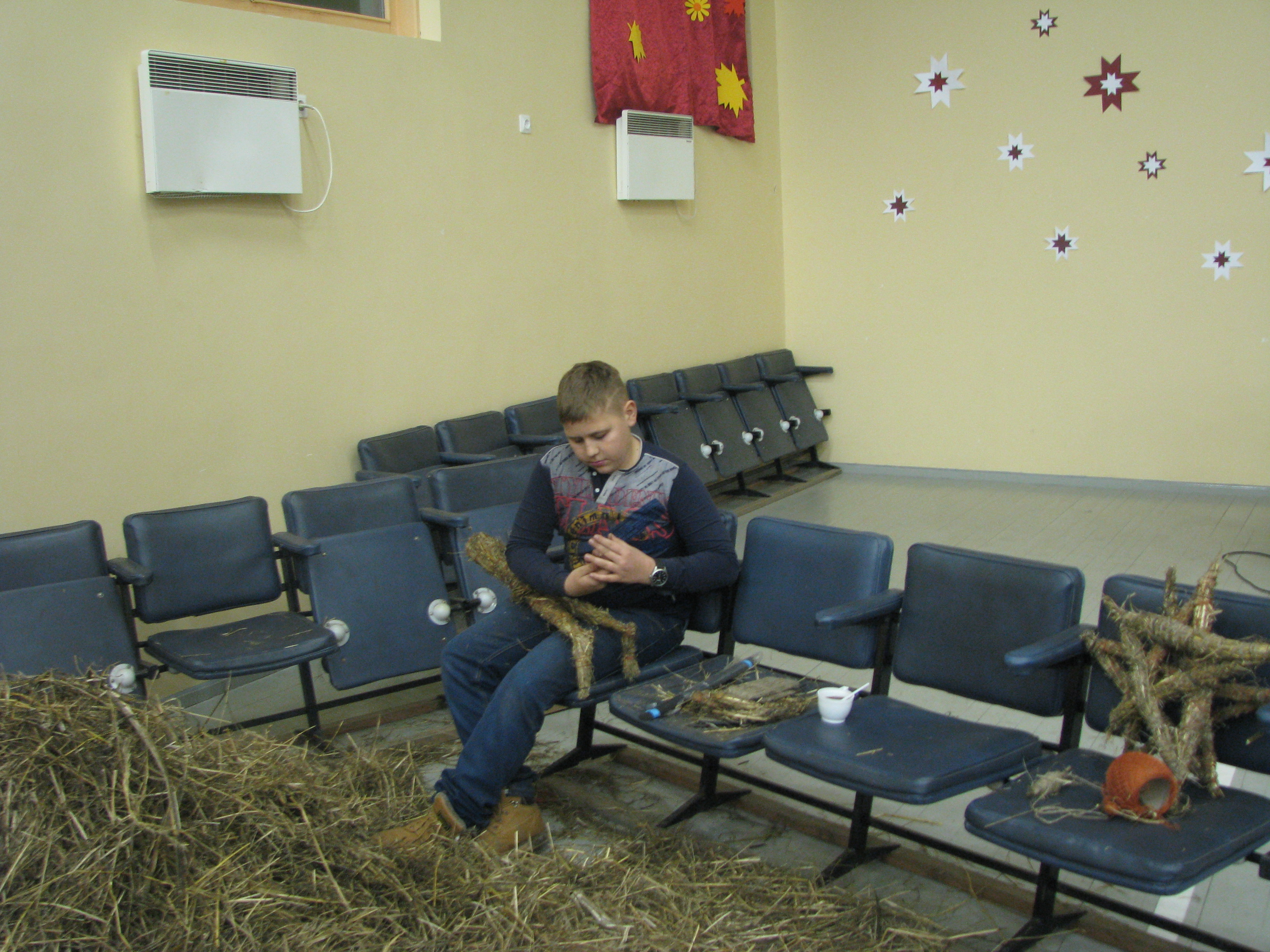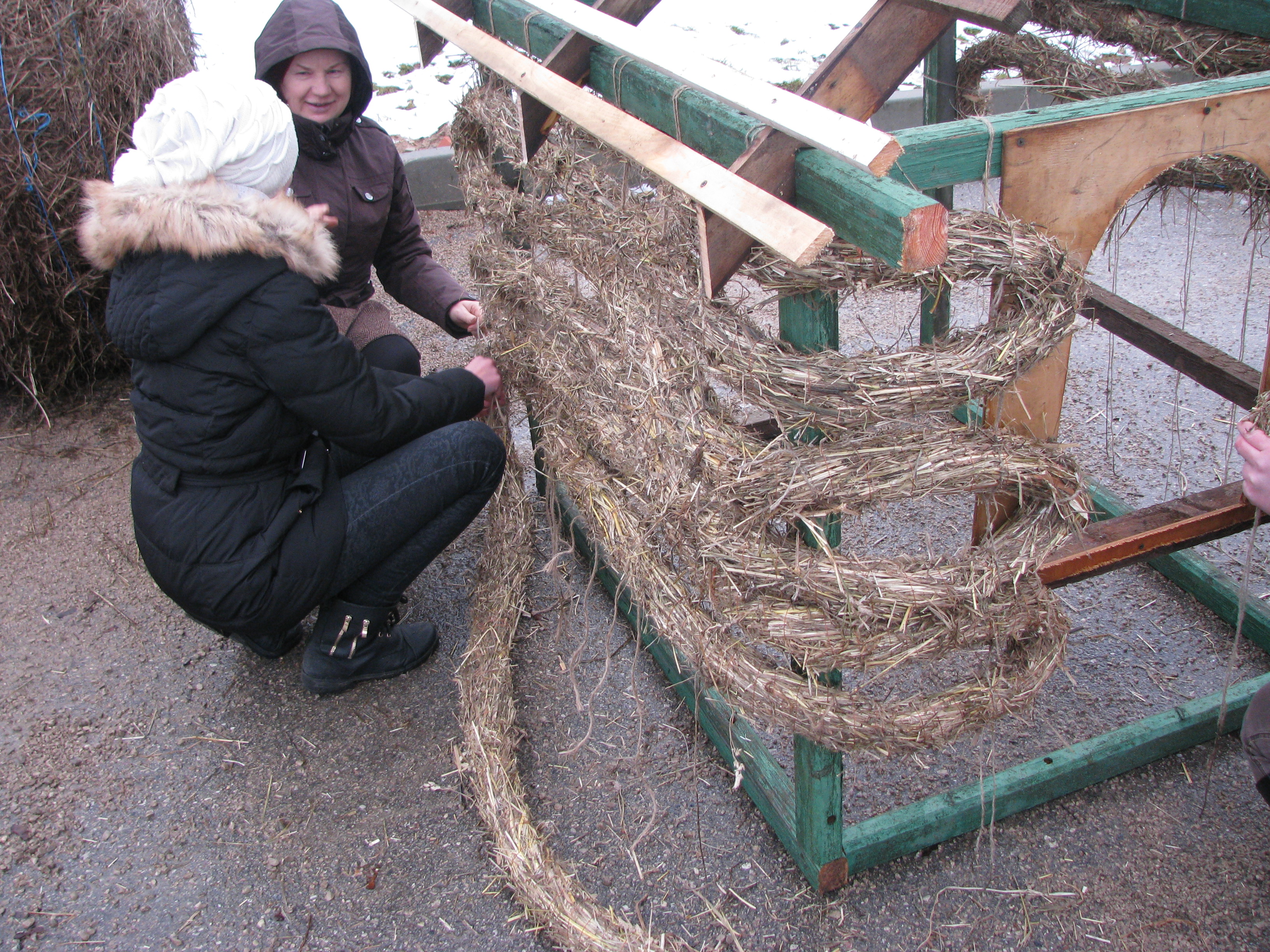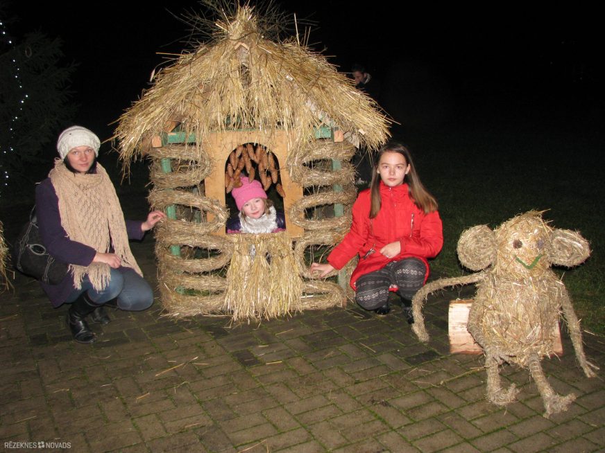 Pirmajā nodarbībā tika veidotas “siena desas”, kuras tapa par mājiņas baļķiem. Otrajā nodarbībā tika būvēta mājiņa, kurai sienas tapa no “siena desām” un jumts no salmu kūlīšiem. Trešajā nodarbībā meistarojām šī gada simbolu – kazu saimi, bet ceturtajā jaunā gada simbolu – pērtiķēnu. Bērni nodarbībās izgatavoja dažādus rotājumos – zvaigznes, eņģeļus un siena apļus, kuri tika izkarināti kokos pie centrālās egles.