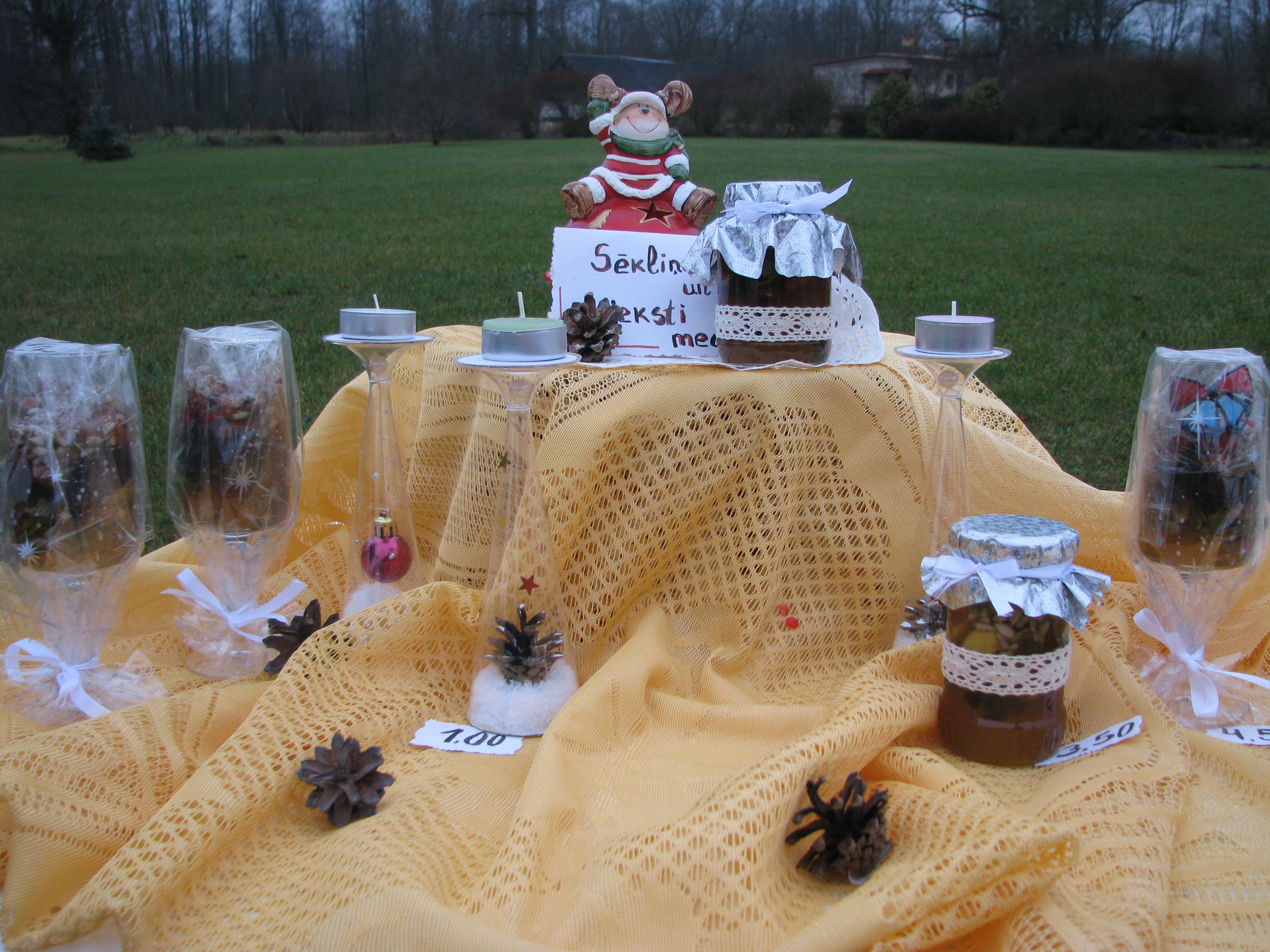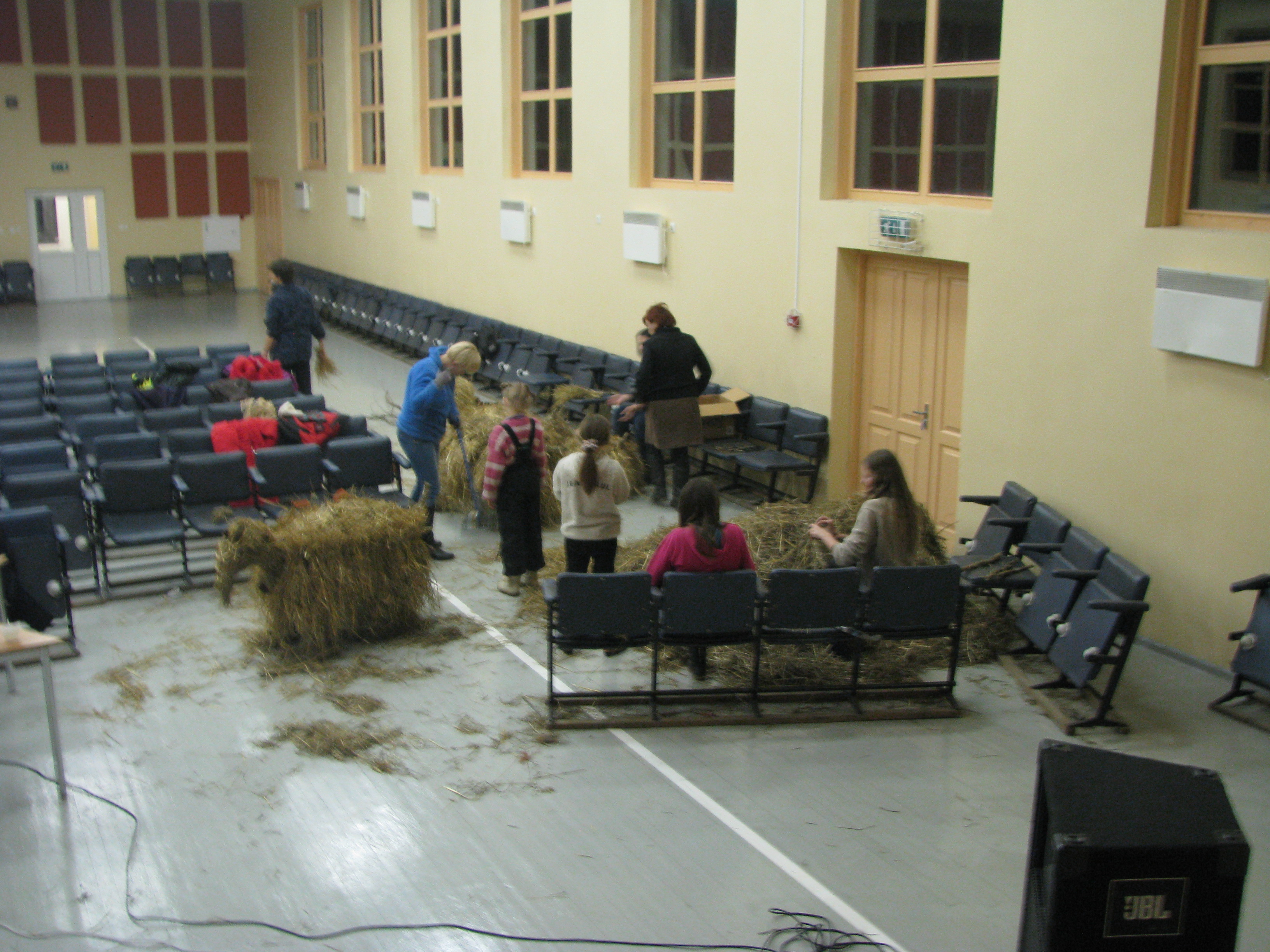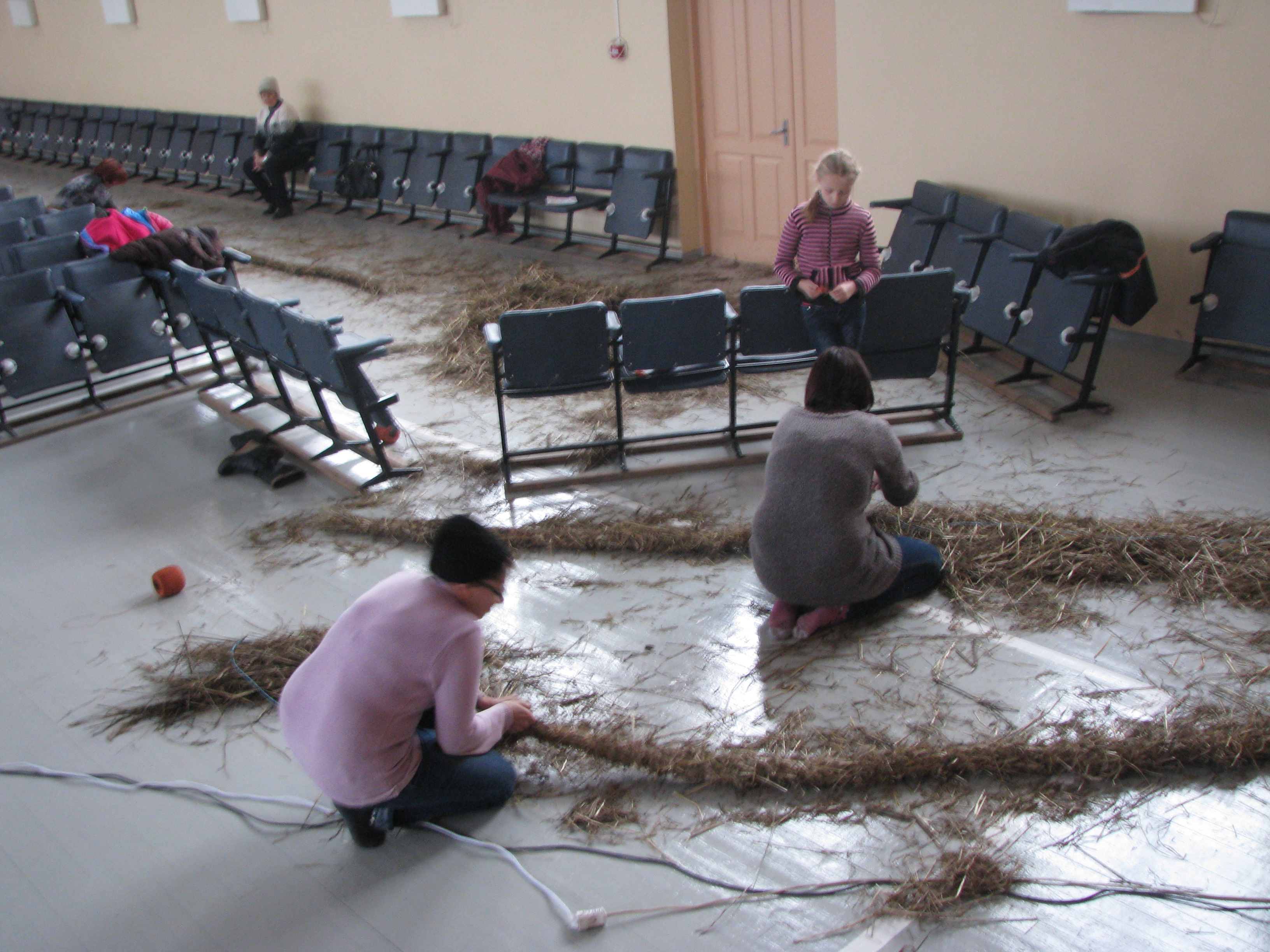 Pirmajā nodarbībā tika veidotas “siena desas”, kuras tapa par mājiņas baļķiem. Otrajā nodarbībā tika būvēta mājiņa, kurai sienas tapa no “siena desām” un jumts no salmu kūlīšiem. Trešajā nodarbībā meistarojām šī gada simbolu – kazu saimi, bet ceturtajā jaunā gada simbolu – pērtiķēnu. Bērni nodarbībās izgatavoja dažādus rotājumos – zvaigznes, eņģeļus un siena apļus, kuri tika izkarināti kokos pie centrālās egles.