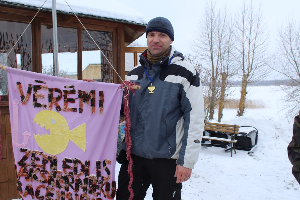 Kaimiņu pagastu zemledus makšķerēšanas cienītāji sacentās par lielāko zivi