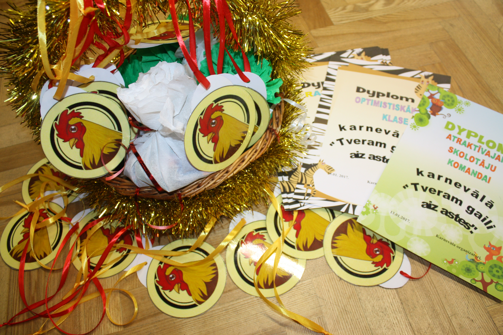Karnevāla noslēgumā klašu kolektīvi saņēma nominācijas „Radošākā klase”, „Smaidīgākā klase”, „Dejojošākā klase”, „Draudzīgākā klase”, „Optimistiskākā klase” un citas nominācijas. Visoriģinālāko tērpu autori saņēma skaistas gaiļa medaļas un saldumus.