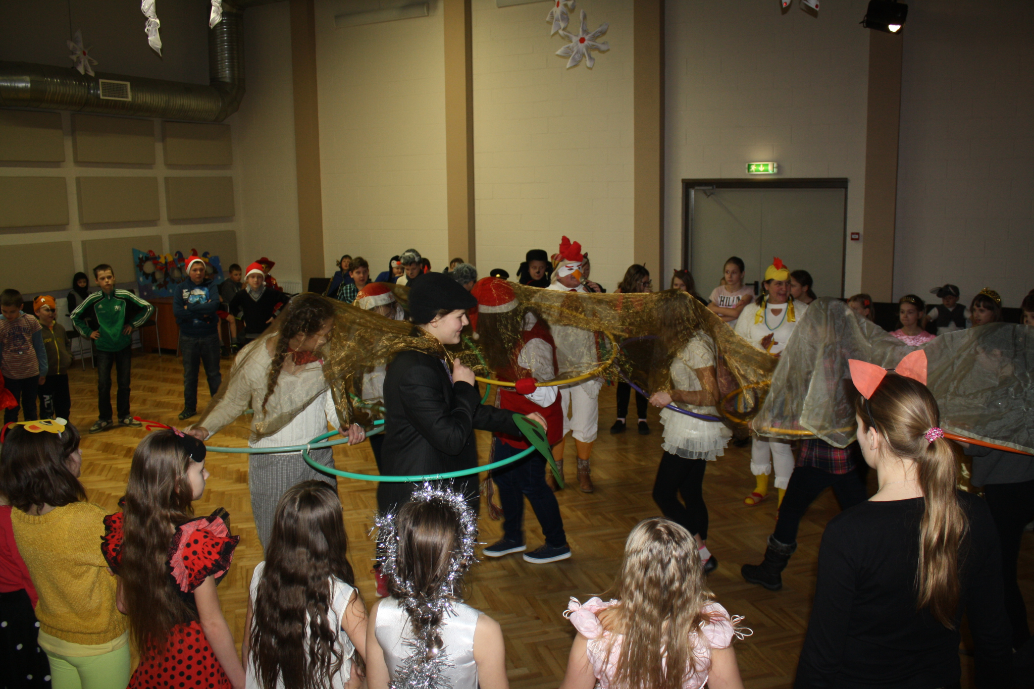 Bet viena no mūsu skolas interesantākajām un atraktīvākajām tradīcijām ir ikgadējais Jaunā gada karnevāls. Jau daudzus gadus pēc kārtas karnevāls notiek janvāra sākumā, pēc ziemas brīvdienām, un tā tēma ir saistīta ar Jaunā gada simbolu. Šogad karnevālā „Ķeram gaili aiz astes” tas bija sarkanais ugunīgais gailis, un galveno lomu uzņēmās skolotāja Silvija Pranča. Protams, vislabāk strādāt komandā, tāpēc vistiņu lomā bija arī skolotājas Antoņina Kozlovska un Ilona Butkāne. Bet iepriekšējā gada simbols - pērtiķītis, kuru tēloja skolotāja Ināra Anča, ieradās nedaudz bēdīgs, jo viņa gads izskanējis. Skolēni paši gatavoja oriģinālas maskas, lai parādītu tās citiem. Visu karnevāla laiku daži palika neatpazīti, iejutušies tēlā, uz laiku izbaudot, kā tas ir – būt kādam citam. Daudzas mazās meitenes bija princešu tērpā, sniega karaliene, jautri un viegli pa zāli virpuļoja biz-biz mārītes, īpašu atzinību izpelnījās konfekšu karalis Žanis.