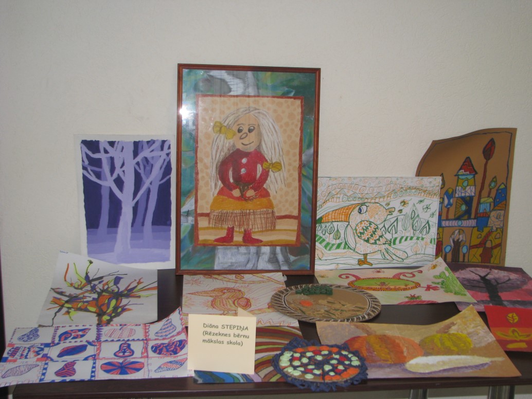 Diāna Stepiņa, Jaunstrūžānu pamatskolas 5. klases audzēkne, izstādi kuplināja ar saviem brīnišķīgajiem zīmējumiem, kas tapuši, darbojoties Rēzeknes bērnu mākslas skolā, kurā Diāna mācās jau ceturto gadu.