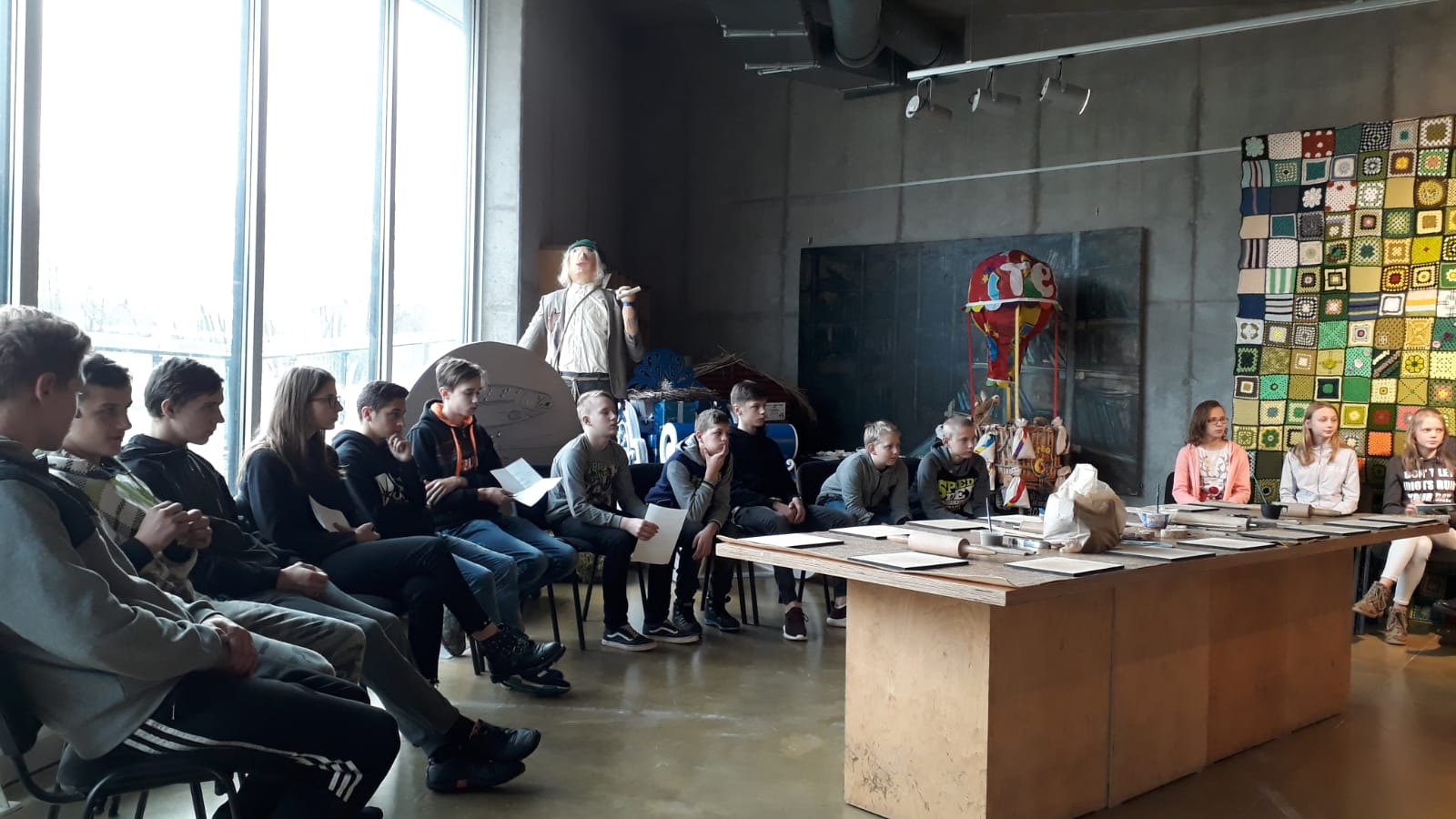 Praktiski darbojāmies keramikas meistardarbnīcā Mihaila Sabanska vadībā, jo katram tika dota iespēja no māla pikuča veidot kādus savus “tēlus” un ņemt tos līdzi.
