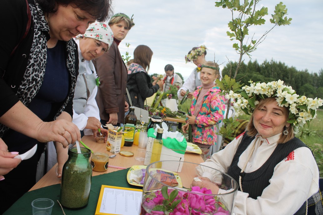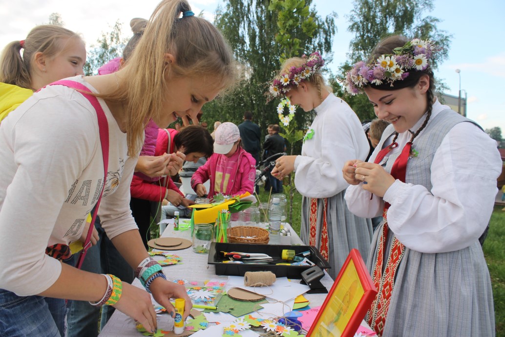22. jūnija rīts atnāca ar nepastāvīgu laiku un visas dienas garumā uztraucāmies, vai svinības maz būs iespējams rīkot „Līgo kalnā”, vai arī – jālīgo būs Tautas nama aktu zālē, iztiekot bez ugunskura un citām brīvdabas priekšrocībām. Pāris reizes draudīgi lietus mākoņi vēl mūs pārsteidza, taču vakarpusē, īsi pirms pasākuma, lietus beidzot mitējās un debesis pavērās priecīgākās krāsās. Jau no plkst.19:00 gaidījām pagasta iedzīvotājus un viesus uz radošajām darbnīcām. To nu bija daudz, katram dodot iespēju iemācīties ko jaunu, sagatavoties līgošanai un arī izveidot sev kādu nieciņu par piemiņu no pasākuma. Kopā ar Sandru Stari un Nelliju Kotebo katrs varēja iemācīties izgatavot kļavu lapu cepuri, kopā ar folkloras kopas „Zeiļa” sievām varēja sev pagatavot Saulgriežu laika maģiskās pirtsslotas un uztaisīt sev smaržīgu skrubīti pirts rituālam, kā arī smelties iedvesmu un uzpīt sev dažādu stilu vainagus. Milzīgu interesi un pieprasījumu izraisīja Jeļenas Bondares vadītā hennas ķermeņa zīmējumu darbnīca, par ko liecināja nepārtrauktā garā rinda pie viņas. Šoreiz uzsvars tika likts tieši uz latviešu etnogrāfiskajām zīmēm. Plašas iespējas darboties bija arī bērniem - varēja izveidot gan savu „Jāņtārpiņu lukturīti”, kurā iedegt gaismiņu, kad paliek tumšs, gan pagatavot filca brošiņas, gan Līgo dekorus, ko piekārt mājās svētku sajūtas radīšanai.