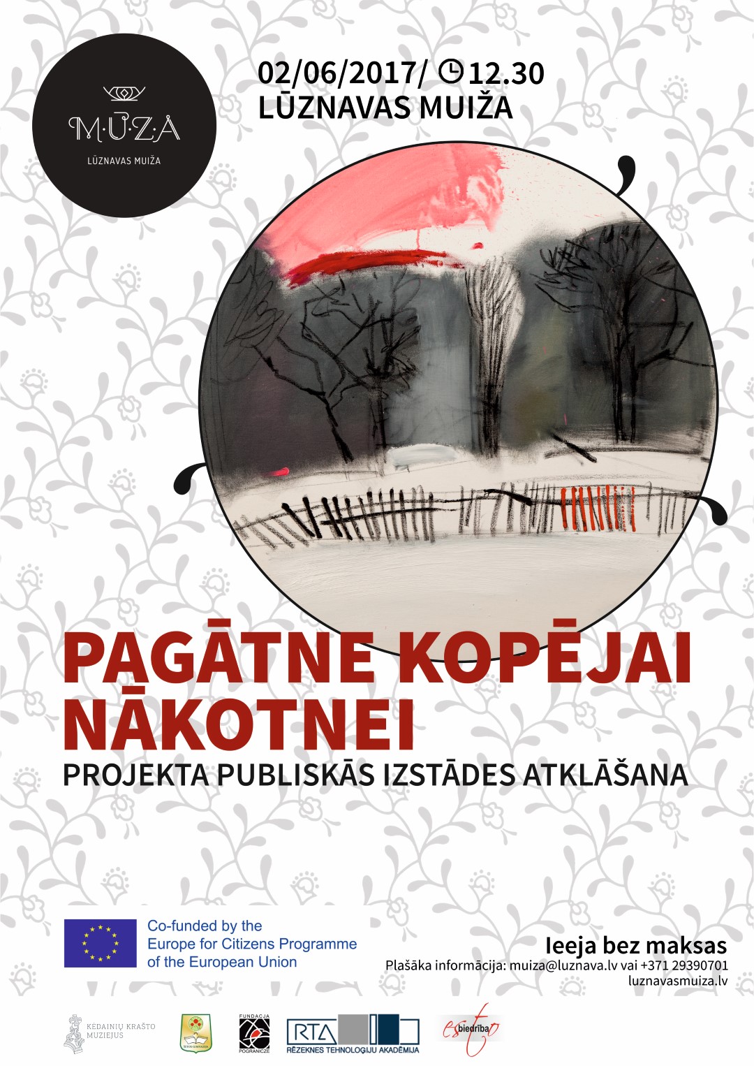 2. jūnijā 12.30 Lūznavas muižā tiks atklāta projekta “The Past for the Common Future“ (Pagātne kopējai nākotnei) izstāde un publiskie mākslas objekti – mākslinieču Agras Ritiņas un Anastasijas Bikovas mākslas darbi. Starptautisko projektu, kurā sadarbojas Latvija, Lietuva un Polija, atbalsta programmas “Eiropa pilsoņiem” apakšprogramma “Eiropas atmiņa”, un tas pieskaras Otrā pasaules kara tēmai.