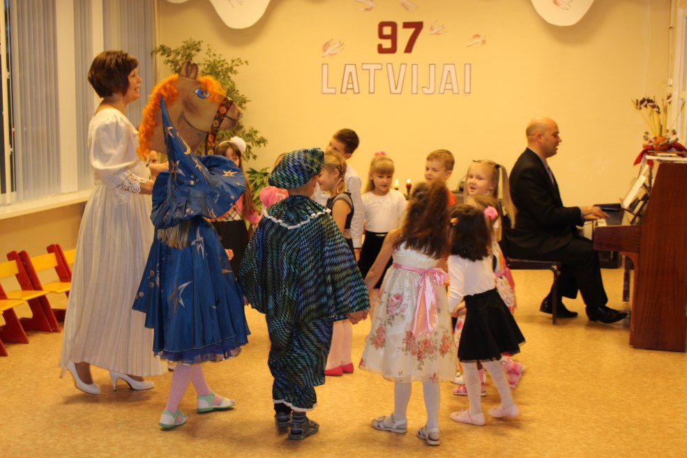 Bērni skaļā balsi nosauca mūsu valsts pastāvēšanas gadskaitli, kas izgreznots rotāja zāles sienu, un atcerējās daudzas Latvijas pilsētas, lai arī līdz galam vēl joprojām neapjaušot mūsu mazās Latvijas īstenos plašumus un lielā cipara nozīmi.