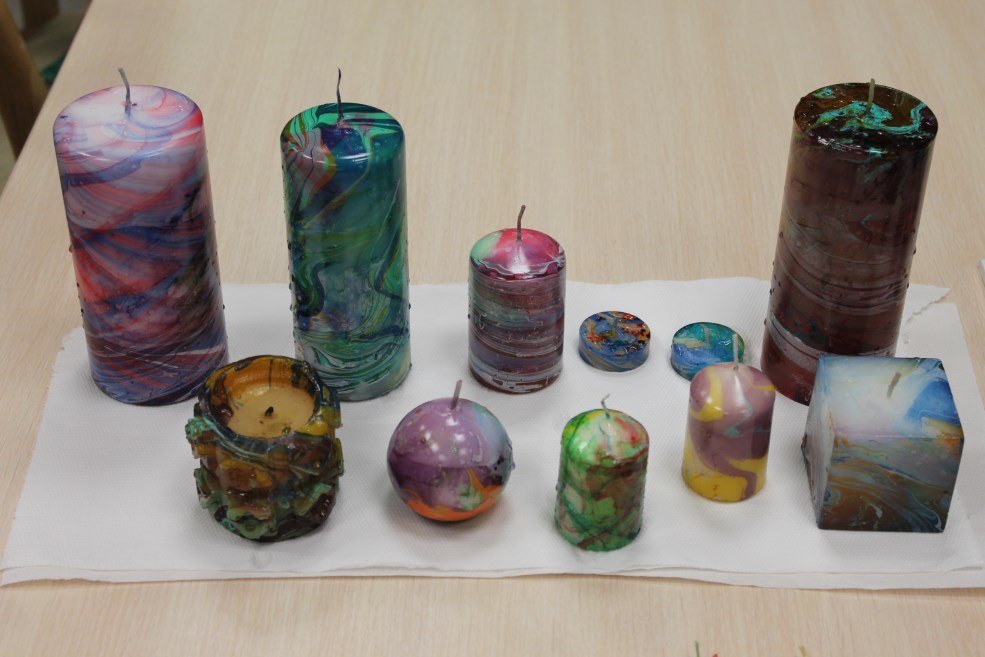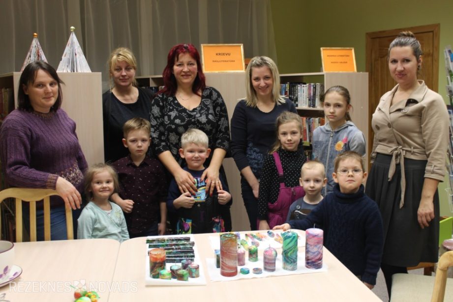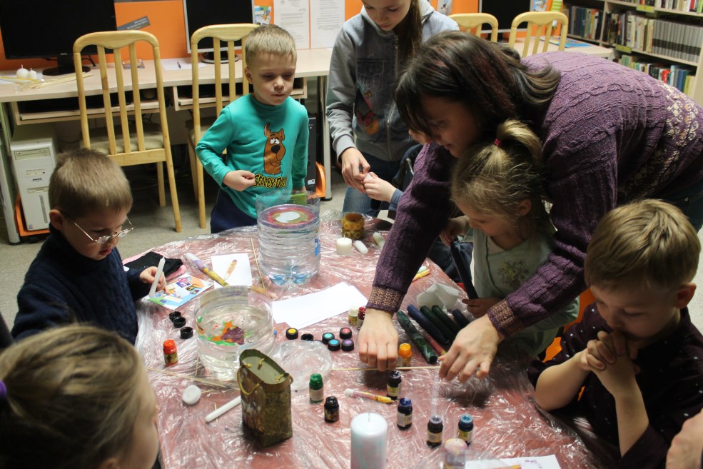 27. janvārī Kaunatas pagasta 1. bibliotēkā, Sveču dienu sagaidot, notika radošā darbnīca māmiņām ar bērniem. Visi kopā piedalījās Sveču marmorēšanas darbnīcā, kurā ar dažādu krāsu palīdzību tika marmorētas sveces. Parastas sveces pārvērtās īstos mākslas darbos! Bērni ar aizrautību izvēlējās un jauca krāsas, mērcēja sveces, lai iegūtu skaistus rakstus. Māmiņas bija sajūsmā par marmorēšanas tehniku, jo tik vieglā paņēmienā var tikt pie skaistām krāsainām, pašu veidotām svecēm. Tehnika ir vienkārša, bet ļoti interesanta, jo nekad iepriekš nevar paredzēt, kādi krāsu raksti izveidosies.