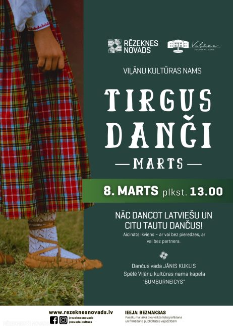 Paralēli tirgum plkst. 13.00 Viļānu kultūras namā notiks Tirgus danči – dalībniekiem būs iespēja mācīties un izdejot latviešu un citu tautu dančus vienkāršā un brīvā atmosfērā.