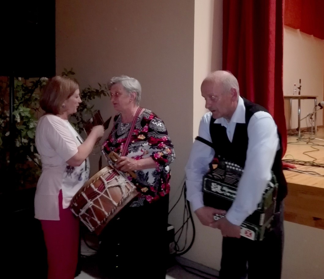 Večerinkas izskaņā uz skatuves kāpa jubilārs Pēteris Belinskis, kuram šogad apritēja 70. gadskārta, bet viņa prasmīgā un skanīgā akordeona spēle pievienoja arī citus muzikantus un dziedātājus.