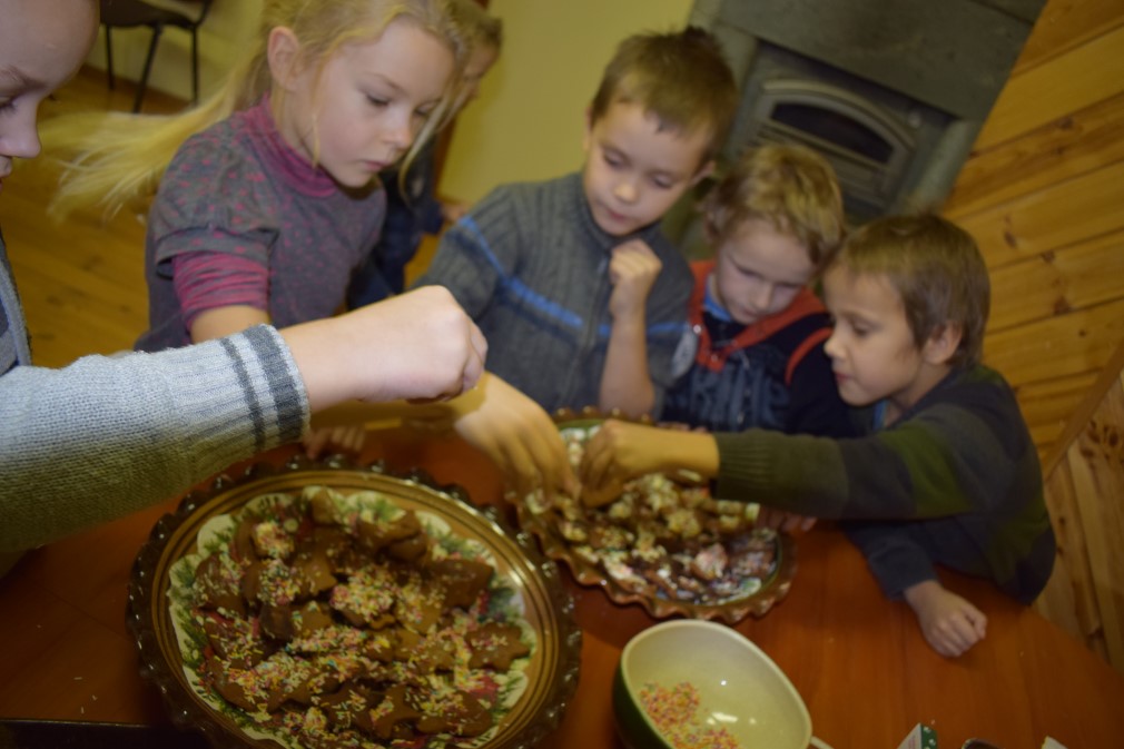 Ir sācies skaistais Ziemassvētku gaidīšanas laiks, noslēpumu laiks, kas liek notrīsēt lielām un mazām sirsniņām. Sakstagala Jāņa Klīdzēja pamatskolas 1. klases skolēni arī ir svētku gaidās. Kas gan būtu Ziemassvētki bez tradicionālajām latviešu piparkūkām? Arī šogad F. Trasuna muzejs “Kolnasāta” aicināja mazos pirmklasniekus cept piparkūkas. Liels prieks un gandarījums valdīja darbnīcā. Skolēni taisīja dažādu formu piparkūkas un dekorēja tās. Ar aizrautību un sirds degsmi tika paveikts šis „garšīgais” darbiņš. Lai piparkūkas izdotos garšīgas, skaistas un interesantas, ar padomu bērniem palīdzēja Inta, Solvita un Sandra. Kad piparkūkas bija izceptas, un muzeju piepildīja to smarža, sākās piparkūku ēšana un jautra mīklu minēšana. Ejot atpakaļ uz skolu, bērni dāvāja muzeja darbiniecēm dāvanu - jautru dziesmu par sniedziņu un novēlēja gaišus un priecīgus Ziemassvētkus!