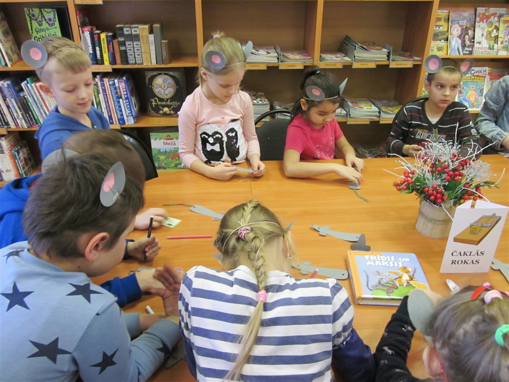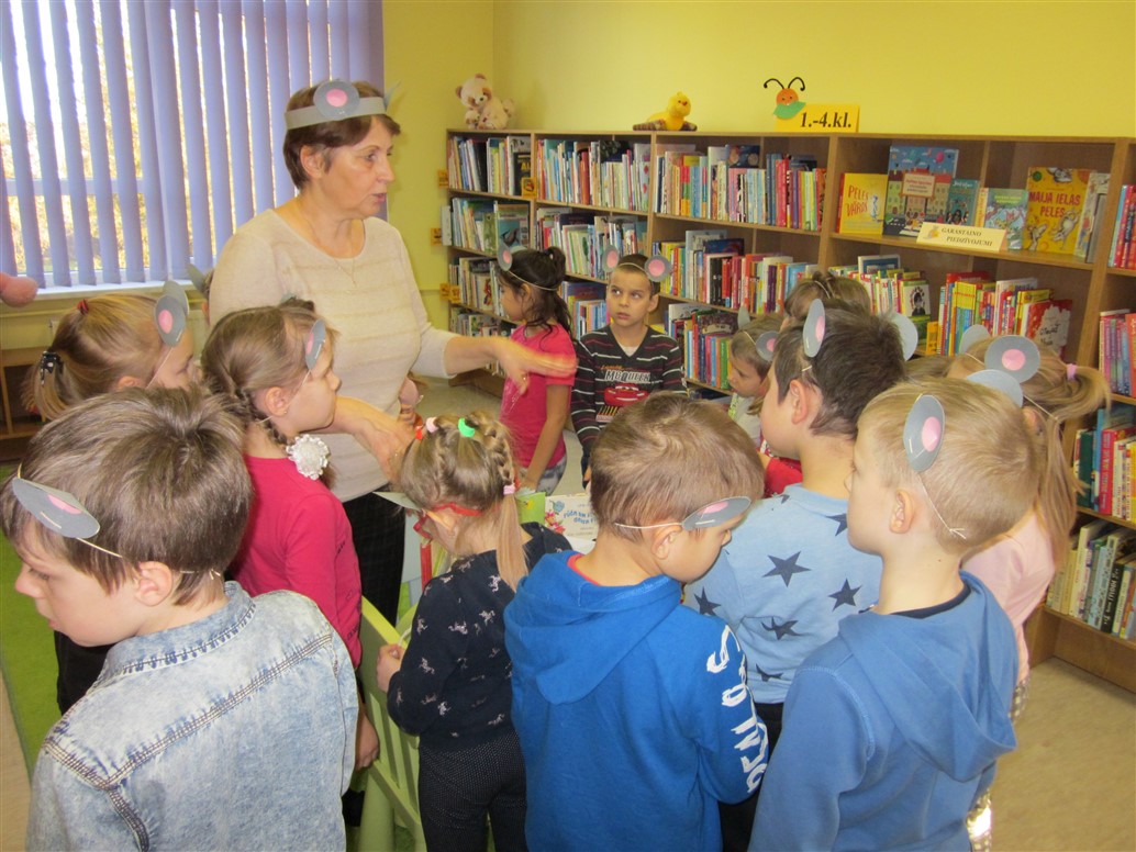 Nupat kā sagaidīts 2020. gads, kas aizritēs Metāliskās Žurkas zīmē, tādēļ, uzliekot galvā peļu austiņas, bibliotekāre kopā ar pirmklasniekiem uz brīdi pārvērtās par mazām, ziņkārīgām pelītēm, un visi kopā klusi un uzmanīgi devās aplūkot grāmatu krātuvi – bibliotēku.