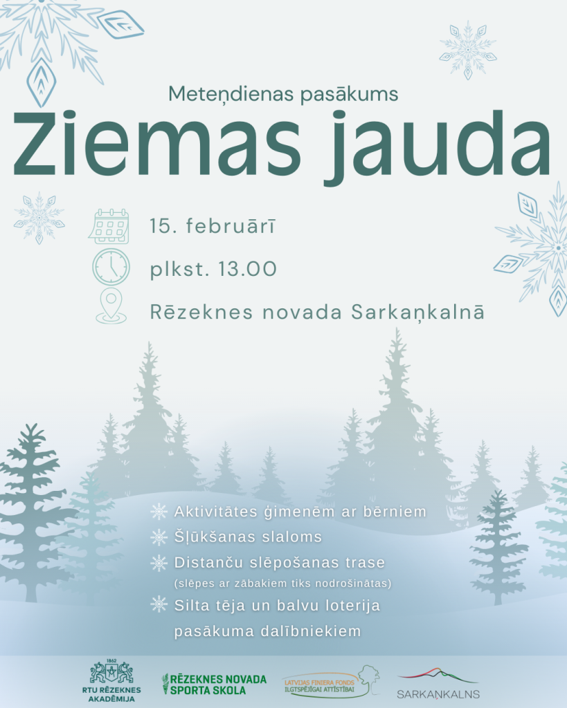 Lai veicinātu aktīvu dzīvesveidu un stiprinātu kopienas garu, svētdien, 15. februārī, plkst. 13.00 Rēzeknes novada Sarkaņkalnā (Vērēmu pagastā) notiks sportisks un izklaidējošs pasākums "Ziemas jauda".