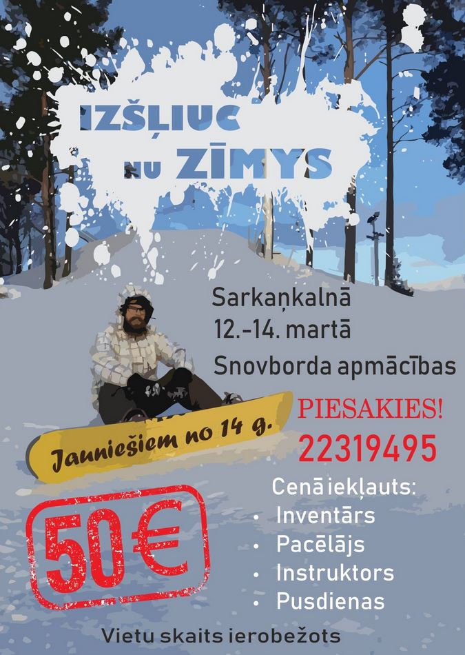 12.-14. martā Sarkaņkalns organizē snovborda apmācības jauniešiem.