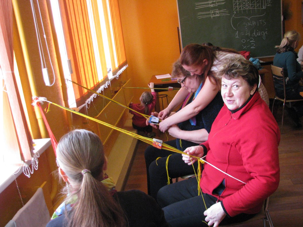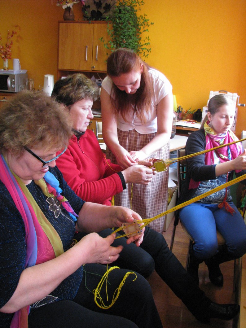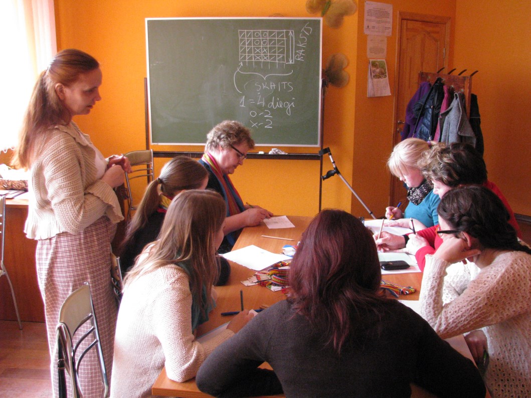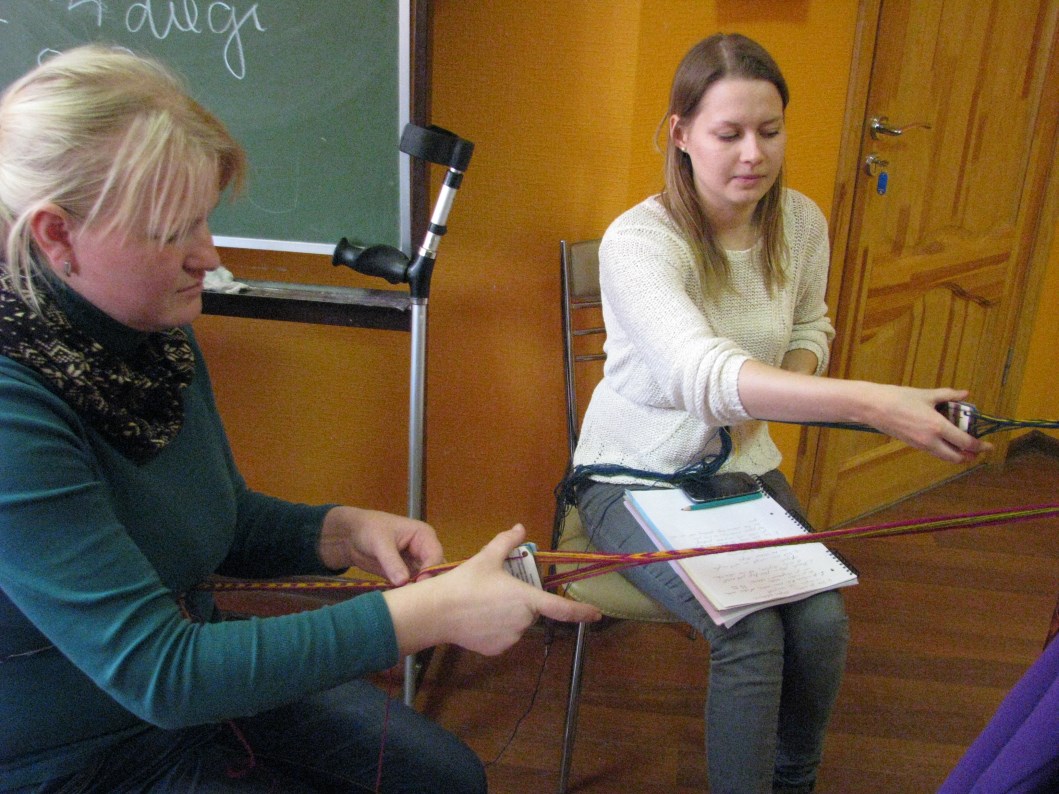 Arī Bērzgalē 3. aprīlī rokdarbu darināšanas interesentus aicināja Tautas lietišķās mākslas studijas “Dzīpariņš” vadītāja Anita Kairiša. Šoreiz iespēju apgūt jostu – celaiņu aušanas pamatus rokarbnieces bija ieradušās no Bērzgales, Rēzeknes, Ludzas un Gaigalavas.