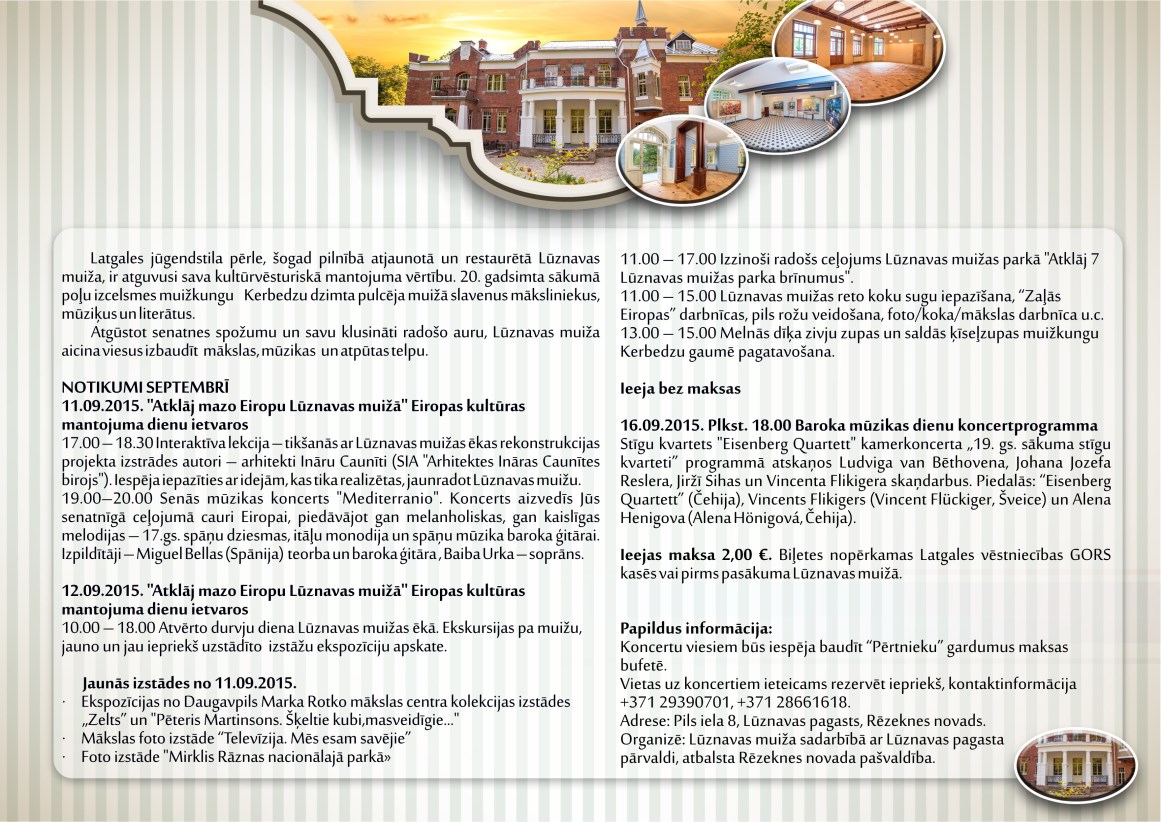 12.09.2015. "Atklāj mazo Eiropu Lūznavas muižā" Eiropas kultūras mantojuma dienu ietvaros