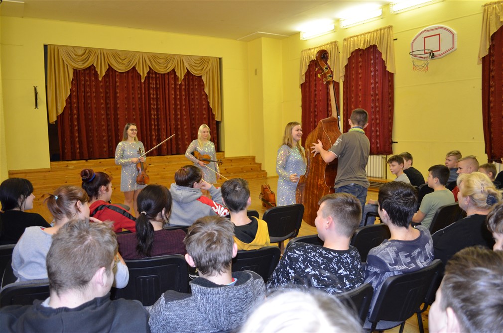 Pasākuma dienā skolēniem bija iespēja uz vietas skolas aktu zālē gan dzirdēt, gan gremdēties bezgala melodiskajās un skaistajās klasisko instrumentu - vijoles, alta, čella un kontrabasa izspēlētajās melodijās. Ar lielu izbrīnu skolēni atskaņotajos mūzikas fragmentos sadzirdēja pazīstamas melodijas no iecienītajām kinofilmām - “Karību jūras pirāti”, “Zvaigžņu kari”, “Harijs Poters”. Izrādījās, ka klasisko mūzikas instrumentu izpildījumā šīs pazīstamās melodijas skan ļoti aizraujoši un mūsdienīgi. Audzēkņiem tika dota iespēja apskatīt tuvāk un pamēģināt izvilināt skaņas no katra šī mūzikas instrumenta.