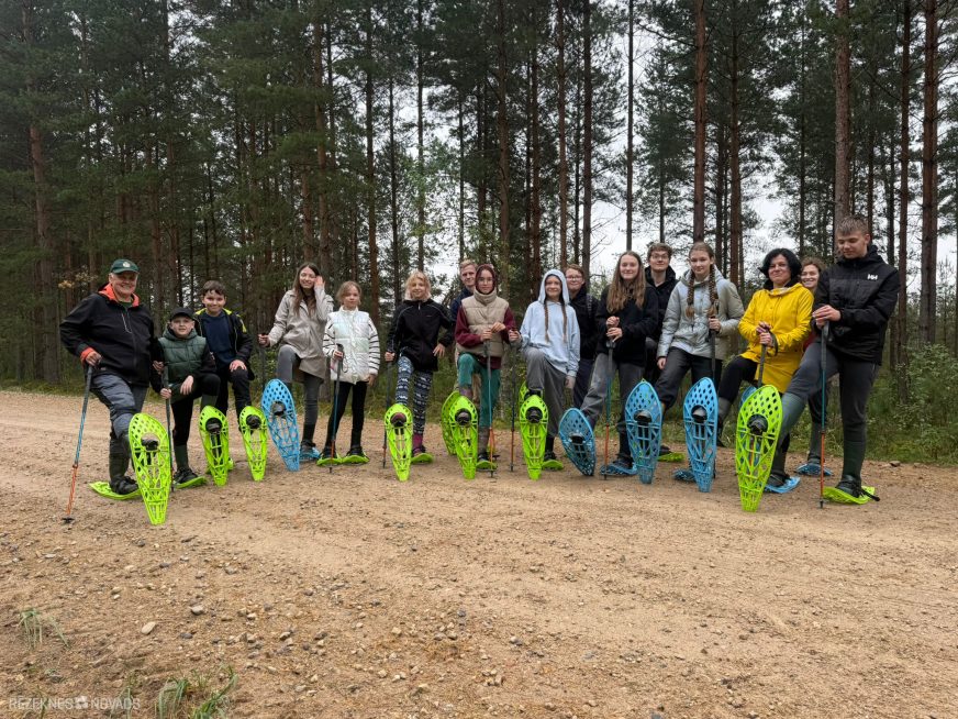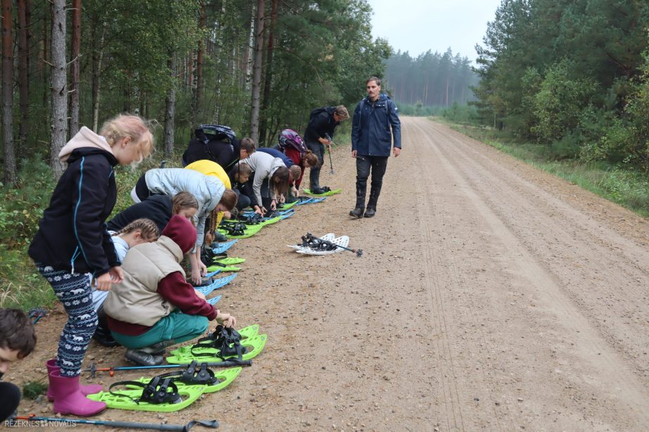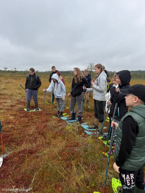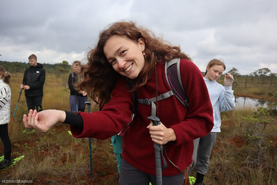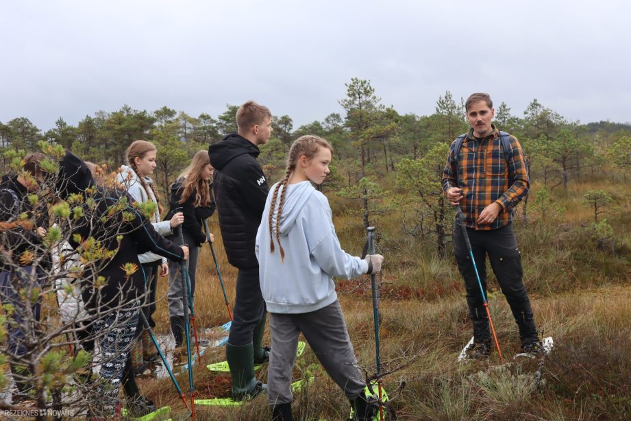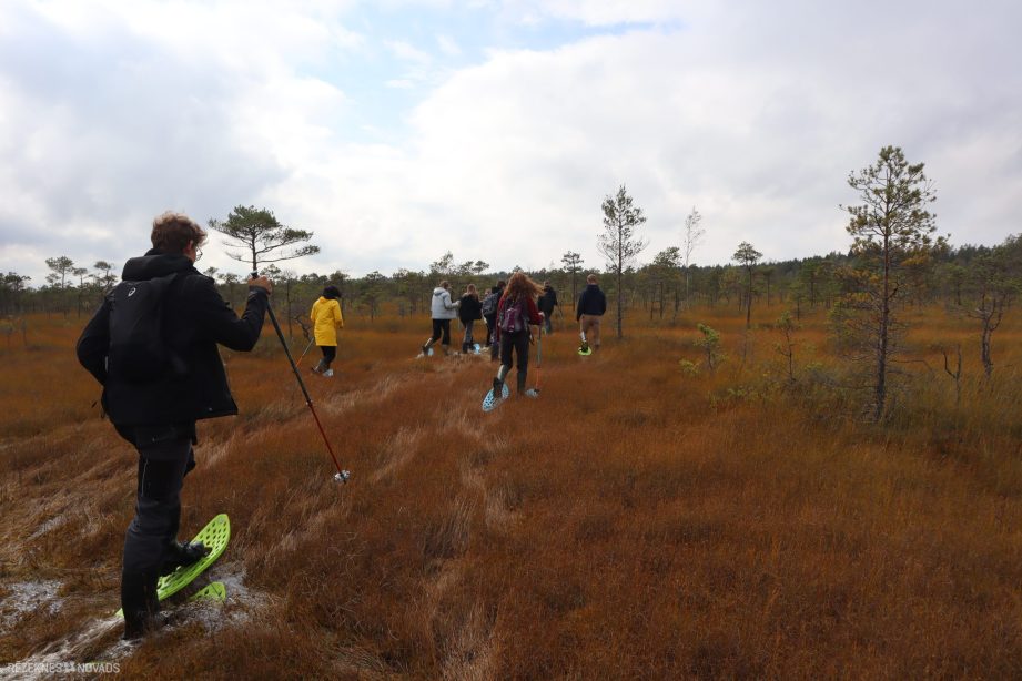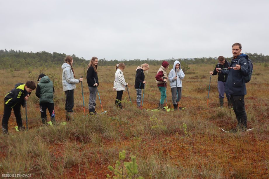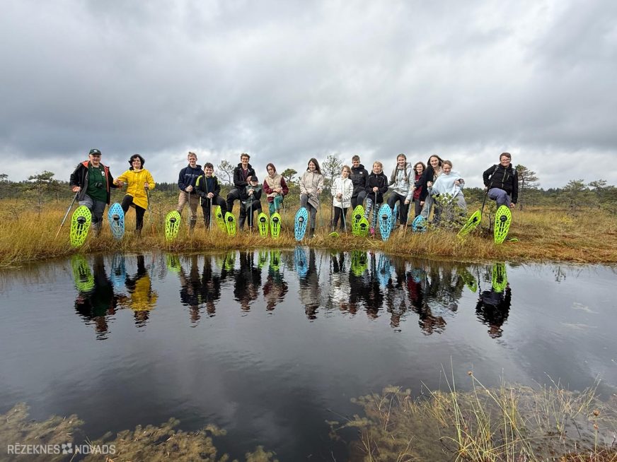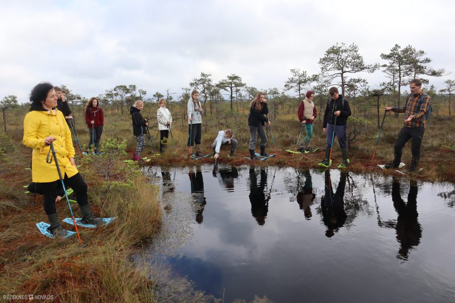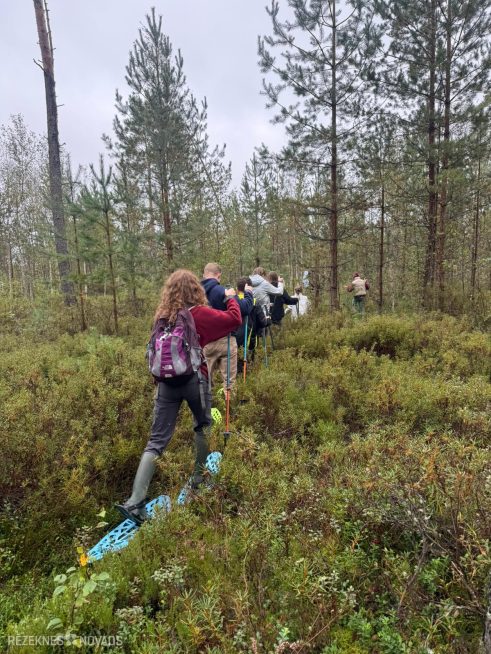 Skrebeļu purvā notika izzinošs pārgājiens ar purva kurpēm