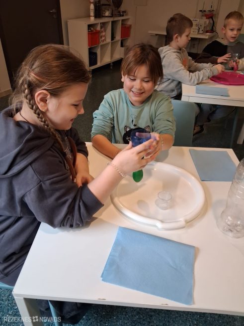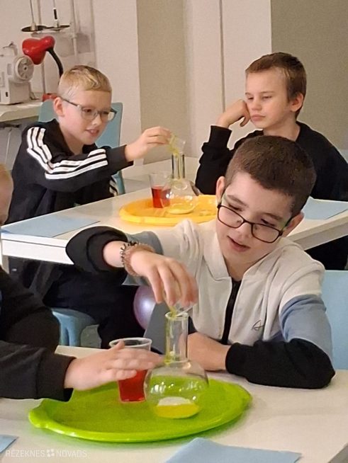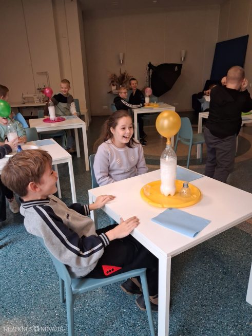 Nodarbībā “Brīnumainā ķīmija” bērni veica dažādus interesantus eksperimentus – novēroja vulkāna izvirdumu, izveidoja lavas lampu, kā arī pūta balonus, izmantojot plastmasas pudeli, sodu un etiķi. Skolēni ar lielu interesi darbojās praktiski un ar sajūsmu vēroja eksperimentu rezultātus.