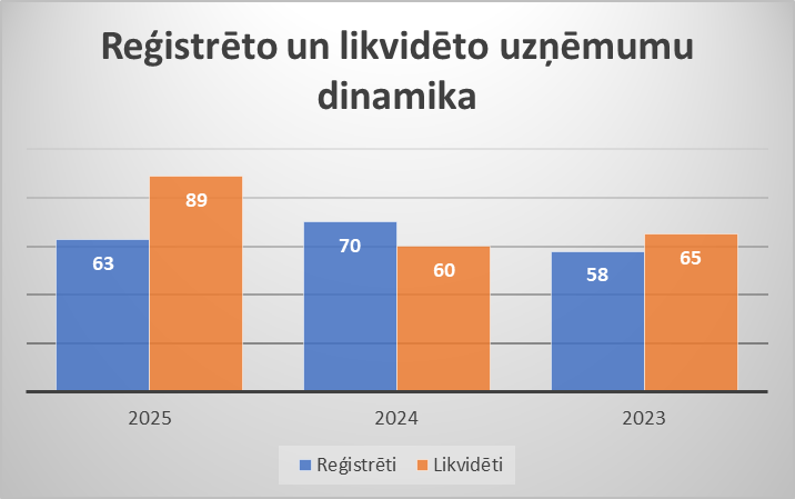 Trīs gadu periodā, 2025. gadā Rēzeknes novadā, ir vērojams straujāks likvidēto uzņēmumu skaita pieaugums, nekā salīdzinot ar iepriekšējiem gadiem, tas ir 89 likvidēti, bet 63 reģistrēti jauni uzņēmumi. Salīdzinot ar 2024. gadu, likvidēto uzņēmumu skaita pieaugums ir par 29, bet jauno reģistrēto uzņēmumu skaits ir samazinājies par 7.