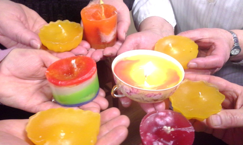 Pēcpusdiena aizritēja nemanot.Smaržoja pēc vaska,parafīna.Vasarā salasītu dažādu zāļu tējas smarža sajaucās ar pīrādziņu smaržu (paldies Jevģēnijai Šnepstei par garšīgo picu) tika dziedāts, jokots un smiets.