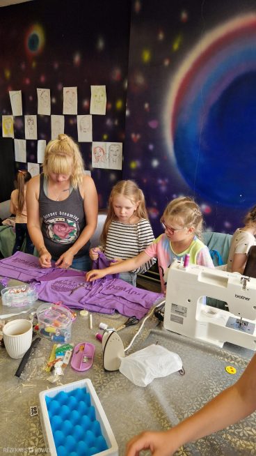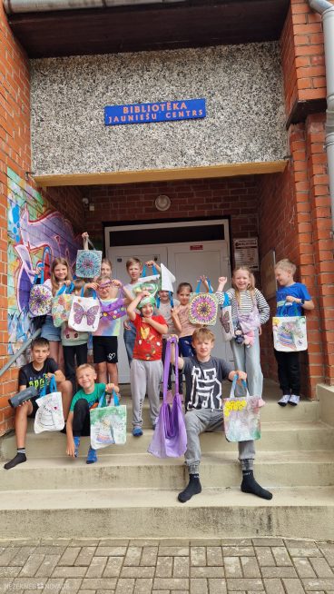 Radošajā daļā viena no jauniešu mammām vadīja meistarklasi, kurā bērni no veciem T-krekliem izveidoja plecu somas, dodot otru dzīvi nolietotam apģērbam.
